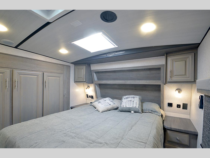 Sleeps 4 Slides 2 Length 29 ft 9 in Ext Width 8 ft 6 in Ext Height 13 ft 5 in Interior Color Carbon, Moonstone Hitch Weight 2246 lbs GVWR 13600 lbs Dry Weight 10935 lbs Cargo Capacity 2665 lbs Fresh Water Capacity 88 gals Grey Water Capacity 102 gals Black Water Capacity 65 gals Tire Size ST235/80R16E Furnace BTU 35000 btu Available Beds Queen Refrigerator Type 12V Refrigerator Size 10 cu ft Convection Cooking Yes Cooktop Burners 3 Number of Awnings 1 Axle Weight 8689 lbs LP Tank Capacity 80 lbs Water Heater Capacity 16 gal Water Heater Type DSI Gas/Electric with Quick Recovery AC BTU 13500 btu TV Info LR 32" 110 LED Smart TV Awning Info 18' 12V LED w/Adjustable Pitch Axle Count 2 Shower Type Neo-Angled Electrical Service 30 amp Similar Floorplans