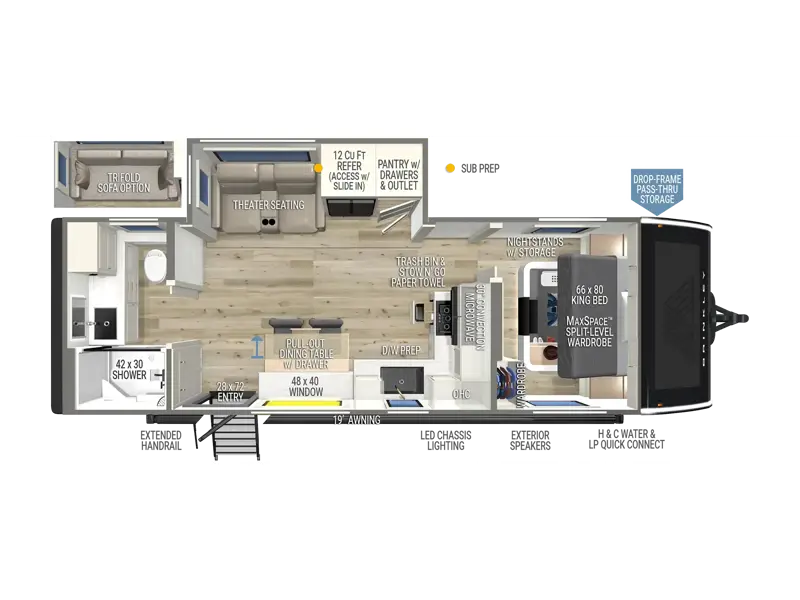 Payments are with approved credit. Terms may vary. Monthly payments are only estimates derived from the RV price with an 84, 96, 180, 204, or 240 month term, 10% to 20% down, 7.99%-11.74% interest APR, and financing terms are based on approved credit for qualified buyers and does not constitute a commitment that financing for a specific rate or term is available. Tax, title, licensing, surcharges, doc fees, titling, registration, or other processing fees may apply and are not included in the prices shown or within the monthly payments and must be paid by the purchaser depending on State laws/rules. While great effort is made to ensure the accuracy of the information on this site, errors do occur so please verify all information, pricing, and payments with a Bish's RV team member by calling us or by visiting us at the dealership.
