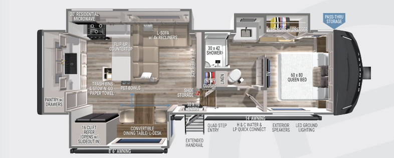Payments are with approved credit. Terms may vary. Monthly payments are only estimates derived from the RV price with an 84, 96, 180, 204, or 240 month term, 10% to 20% down, 7.99%-11.74% interest APR, and financing terms are based on approved credit for qualified buyers and does not constitute a commitment that financing for a specific rate or term is available. Tax, title, licensing, surcharges, doc fees, titling, registration, or other processing fees may apply and are not included in the prices shown or within the monthly payments and must be paid by the purchaser depending on State laws/rules. While great effort is made to ensure the accuracy of the information on this site, errors do occur so please verify all information, pricing, and payments with a Bish's RV team member by calling us or by visiting us at the dealership.