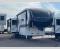 This Model Z luxury fifth wheel is bright and modern on the inside, with loads of amenities that will have you dreaming of your next trip! Enter and find a spacious combined living/kitchen space thanks to dual opposing slides. There is ample seating with a sliding desk/dining table, 62" theater seating, and a 72" tri-fold sofa along the rear wall. You can easily relax and enjoy the 50" Smart telescoping TV with a cozy fireplace below. The kitchen offers all that you need to prepare and cook meals just like home with a 16 cu. ft. refrigerator for your perishables, a 30" microwave oven, and three burner range top and oven. You will love the integrated spice rack, and the kitchen island all outfitted with dog bowls and double pull out trash bins with an integrated Stow 'N Go paper towel holder. There is also an 84" pantry with adjustable shelves for all of your canned and dry goods. Head up the steps to a private master suite with king bed slide. You can opt for the queen bed if you like. A sliding dresser top features hidden storage which is perfect for jewelry and other personal belongings. The front wardrobe features mirrored doors and the corner closet has been prepped for a stackable washer and dryer if you choose to add that option. Relax and enjoy a large bath featuring a linen cabinet, a 30" x 42" shower, and vanity with sink, plus medicine cabinet.