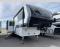 This Model Z luxury fifth wheel is bright and modern on the inside, with loads of amenities that will have you dreaming of your next trip! Enter and find a spacious combined living/kitchen space thanks to dual opposing slides. There is ample seating with a sliding desk/dining table, 62" theater seating, and a 72" tri-fold sofa along the rear wall. You can easily relax and enjoy the 50" Smart telescoping TV with a cozy fireplace below. The kitchen offers all that you need to prepare and cook meals just like home with a 16 cu. ft. refrigerator for your perishables, a 30" microwave oven, and three burner range top and oven. You will love the integrated spice rack, and the kitchen island all outfitted with dog bowls and double pull out trash bins with an integrated Stow 'N Go paper towel holder. There is also an 84" pantry with adjustable shelves for all of your canned and dry goods. Head up the steps to a private master suite with king bed slide. You can opt for the queen bed if you like. A sliding dresser top features hidden storage which is perfect for jewelry and other personal belongings. The front wardrobe features mirrored doors and the corner closet has been prepped for a stackable washer and dryer if you choose to add that option. Relax and enjoy a large bath featuring a linen cabinet, a 30" x 42" shower, and vanity with sink, plus medicine cabinet.