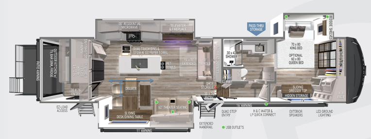 Payments are with approved credit. Terms may vary. Monthly payments are only estimates derived from the RV price with an 84, 96, 180, 204, or 240 month term, 10% to 20% down, 7.99%-11.74% interest APR, and financing terms are based on approved credit for qualified buyers and does not constitute a commitment that financing for a specific rate or term is available. Tax, title, licensing, surcharges, doc fees, titling, registration, or other processing fees may apply and are not included in the prices shown or within the monthly payments and must be paid by the purchaser depending on State laws/rules. While great effort is made to ensure the accuracy of the information on this site, errors do occur so please verify all information, pricing, and payments with a Bish's RV team member by calling us or by visiting us at the dealership.