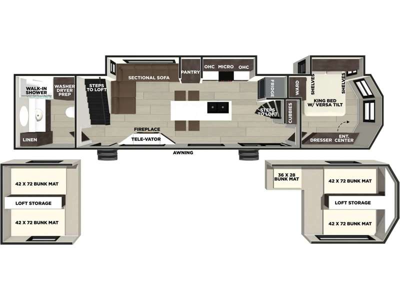Versa-tilt Master with LOTS of Storage, 2 Bunk Lofts with Storage, Luxury Living!