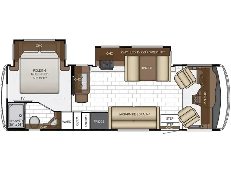 Dropdown Bunk Bed Over Driver/Passenger Seats with Electric Release Latches and 32" TV in Front Overhead and Bunk Ladder*