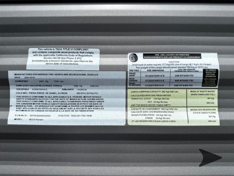 Used 2022 Heartland Pioneer RE 275