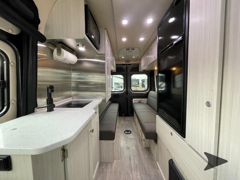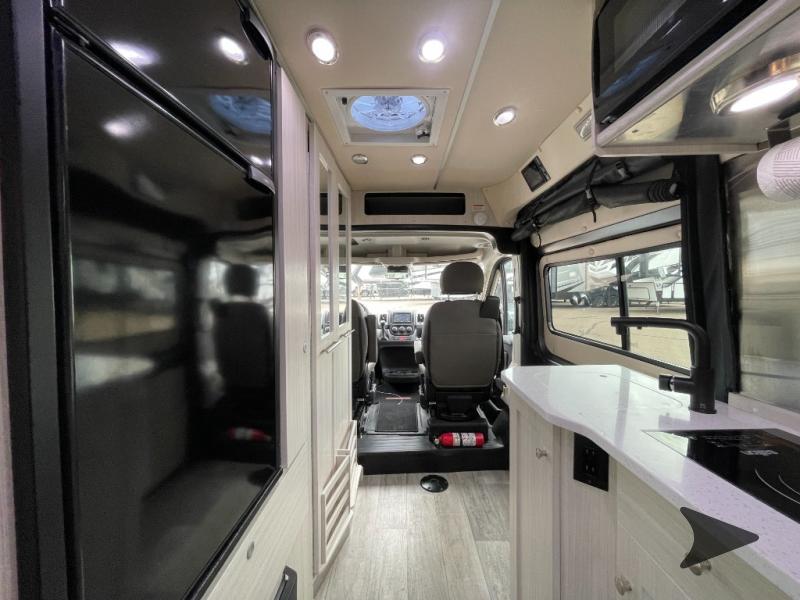 The Roadtrek Class B gas motorhomes are built upon the stylish Ram ProMaster chassis with a 3.6L V6 gas engine to power your trips near and far. The rearview backup camera, the stability program, and the Uconnect 3 with navigation and a 5" touchscreen will make the drive just as sweet as the destination. Each model includes a 12V refrigerator, a two-burner recessed propane stove with a flush cover and built-in igniter, and ample storage space for all your belongings. The instant hot water system with 36,000 BTU will provide hot water when you need it, and the 16,000 BTU propane automatic furnace will keep you warm if you travel year around.