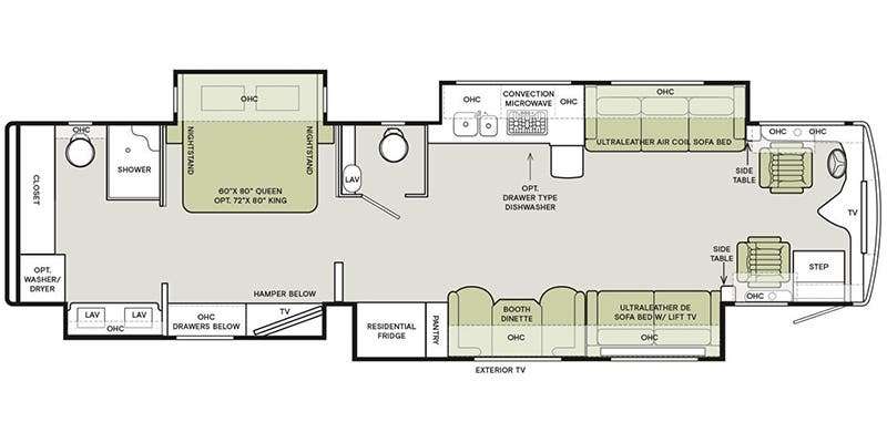 Ultraleather Air Coil Sofa/Bed and Lift TV on Driver Side (Optional; N/A 37 BH, 40 AH, 40 IH, 44 OH)